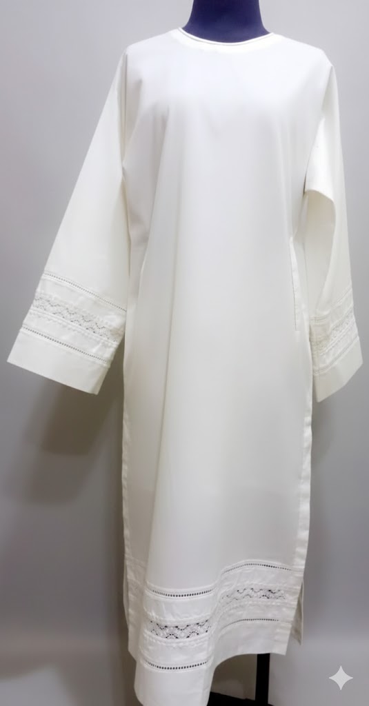 Elevate your wardrobe with this elegant white qameez, designed with simplicity and refined craftsmanship. Made from smooth, breathable fabric, this piece offers comfort while maintaining a graceful, modest silhouette.